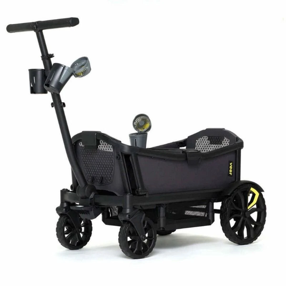 The Misting Fan fits perfectly in the Cruiser Tray Cup Holder to cool passengers and is designed specifically to keep little fingers safe. It can also be used in the handlebar cup holder to keep Mom or Dad cool in while push mode. The Misting Fan has 2 modes of cooling. Integrated misting fan/humidifier uses ultrasonic high frequency technology to convert the water into micro-fine cool mist that provides extra cooling to the fan breeze. Or, you can use the fan without mist.