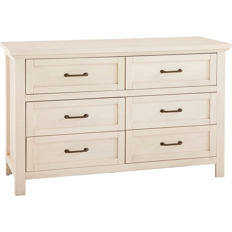 The Westfield 6-Drawer Dresser by Westwood Design is perfect for creating a farmhouse-style nursery. Constructed with charming accents such as rustic hardware and a distressed finish, it is ideal for storing baby items, clothes, bedding, and more.