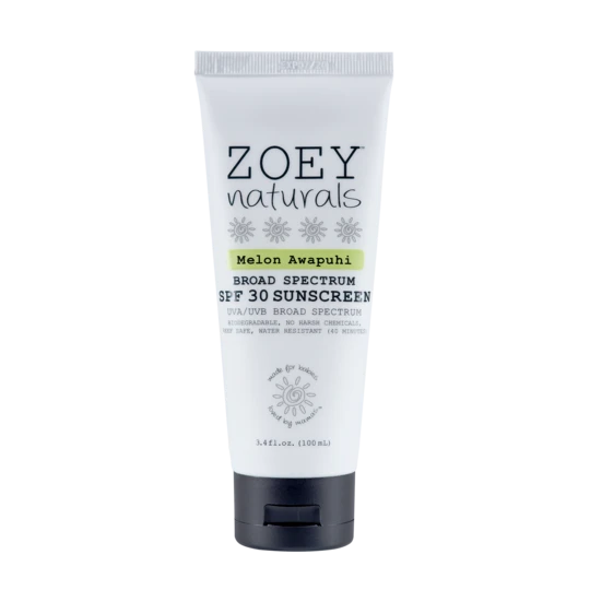 Zoey Naturals SPF 30 Mineral Sunscreen gives UVA/UVB sun protection and is infused with nutrients to keep your baby’s skin nourished while in the sun.